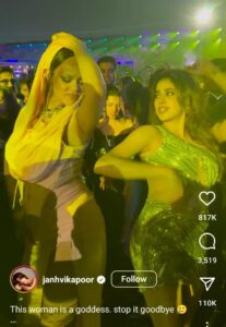 मुकेश अंबानी के बेटे अनंत अंबानी और राधिका मर्चेंट के प्री-वेडिंग कार्यक्रम जोर-शोर से चल रहे हैं। पहले दिन जामनगर, गुजरात में हुए कार्यक्रम में बॉलीवुड की मशहूर हस्तियां पहुंचीं तो हॉलीवुड पॉपस्टार रिहाना ने पहली बार भारत में परफॉर्म करके समा बांध दिया। अब हाल ही में रिहाना का जाह्नवी कपूर के साथ वीडियो सामने आया है, जिसमें वे ‘झिंगाट’ गाने पर थिकरती नजर आ रही हैं।