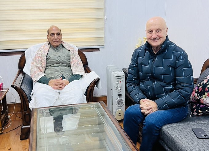मीडिया की माने तो अनुपम खेर ने सोशल मीडिया पर जो तस्वीरें साझा कीं, जिनमें से एक तस्वीर में वे केंद्रीय मंत्री के बगल में खड़े होकर कैमरे के लिए पोज देते नजर आ रहे हैं। एक अन्य तस्वीर में अभिनेता को राजनाथ सिंह से बात करते हुए देखा जा सकता है। एक अन्य तस्वीर में अनुपम खेर को हाथ जोड़कर राजनाथ सिंह का अभिवादन करते हुए भी देखा गया।