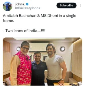 बहरहाल, सोशल मीडिया पर महेन्द्र सिंह धोनी और अमिताभ बच्चन की तस्वीरें खूब वायरल हो रही हैं। इसके अलावा सोशल मीडिया यूजर्स लगातार कमेंट्स कर अपनी प्रतिक्रिया दे रहे हैं।