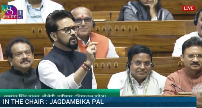 दिल्ली: मीडिया सूत्रों द्वारा प्राप्त जानकारी ले अनुसार, आज सदन में भाजपा के सांसद अनुराग ठाकुर ने कहा कि,दुशासन और दुर्योधन दोनों दुष्ट और बदमाश हो सकते थे, पर उन्होंने कभी इमरजेंसी नहीं लगायी थी.. भाजपा सांसद अनुराग ठाकुर ने सदन में यह भी कहा कि, दुशासन और दुर्योधन दोनों दुष्ट भी हो सकते हैं, बदमाश भी हो सकते हैं, दुश्मन भी हो सकते हैं पर उन्होंने कभी इमरजेंसी नहीं लगाई थी.. भाजपा सांसद अनुराग ठाकुर ने सदन में यह भी कहा कि,असत्य के पैर नहीं होते.. असत्य सिर्फ कांग्रेस के कंधों पर सवार होकर सैर करता है, जैसे मदारी के कंधों पर बंदर होता है..