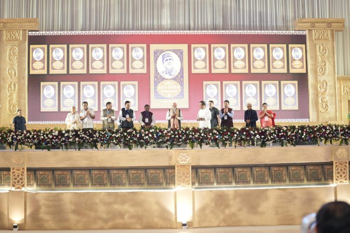 प्रधानमंत्री ने इस अवसर पर 100 रुपये के स्‍मारक सिक्‍के का अरावरण किया और 21 भाषाओं में भूपेन हजारिका की जीवनी का विमोचन किया।