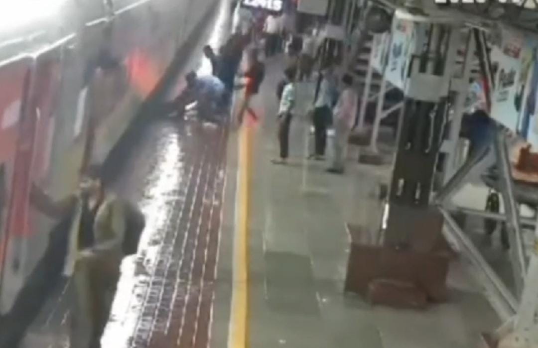 इंदौर: ट्रेन में चढ़ते वक्त फिसला महिला का पैर, RPF के जवान ने बचाई जान