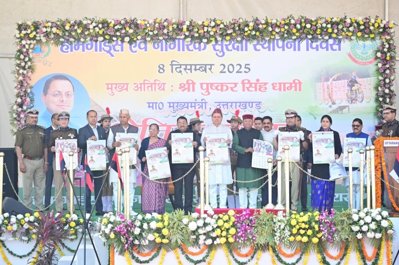 मीडिया सूत्रों से मिली जानकारी के अनुसार, उत्तराखंड के मुख्यमंत्री पुष्कर सिंह धामी ने सोमवार को ननूरखेड़ा, देहरादून में आयोजित होमगार्ड्स स्थापना दिवस कार्यक्रम में भाग लिया और परेड का निरीक्षण किया। इस अवसर पर, मुख्यमंत्री ने होमगार्ड्स एवं नागरिक सुरक्षा विभाग की स्मारिका 2025 और विभागीय कैलेंडर 2026 का विमोचन भी किया। प्रेस विज्ञप्ति के अनुसार, उन्होंने सेवारत एवं दिवंगत होमगार्ड्स कर्मियों के आश्रितों को चेक भी वितरित किए। मुख्यमंत्री ने घोषणा की कि अब होमगार्ड स्वयंसेवकों के लिए वर्दी भत्ता स्वीकृत किया जाएगा। विज्ञप्ति के अनुसार, राज्य में अंतर-जिला ड्यूटी पर तैनात होमगार्ड स्वयंसेवकों का दैनिक भोजन भत्ता ₹100 से बढ़ाकर ₹150 प्रतिदिन कर दिया गया है। नागरिक सुरक्षा स्वयंसेवकों का प्रशिक्षण भत्ता भी ₹50 से बढ़ाकर ₹140 प्रतिदिन कर दिया गया है।