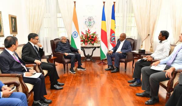 मीडिया सूत्रों से मिली जानकारी के अनुसार, उपराष्ट्रपति सी.पी. राधाकृष्णन ने आज सेशेल्स के राष्ट्रपति डॉ. पैट्रिक हर्मिनी के साथ मुलाकात की। सी.पी. राधाकृष्णन ने सोशल मीडिया पोस्ट में डॉ० हर्मिनी को राष्ट्रपति का पदभार संभालने पर शुभकामनाएं दी। उन्होंने राष्ट्रपति के साथ भारत और सेशेल्स के बीच आपसी सहयोग बढ़ाने पर चर्चा की। बैठक में दोनों नेताओं ने हिंद महासागर क्षेत्र और ग्लोबल साउथ में शांति तथा स्थिरता के साझे दृष्टिकोण की पुष्टि की।