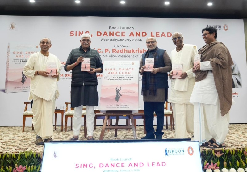 मीडिया सूत्रों से मिली जानकारी के अनुसार, उपराष्ट्रपति सी. पी. राधाकृष्णन ने बुधवार को नई दिल्ली स्थित उपराष्ट्रपति आवास में आयोजित एक समारोह में हिंदोल सेनगुप्ता द्वारा लिखित “गाओ, नाचो एवं नेतृत्व करो: श्रील प्रभुपाद के जीवन से नेतृत्व का सबक” पुस्तक का विमोचन किया। उपराष्ट्रपति ने उपस्थित लोगों को संबोधित करते हुए भारत को एक सभ्यतागत नेता के रूप में वर्णित किया, जिसकी परंपराओं ने निरंतर मूल्यों, सेवा एवं आंतरिक अनुशासन पर आधारित नेतृत्व पर बल दिया है। उन्होंने कहा कि ए. सी. भक्तिवेदांत स्वामी प्रभुपाद का जीवन इस परंपरा में दृढ़ता के साथ खड़ा है, जो उद्देश्य, विनम्रता एवं नैतिक स्पष्टता पर आधारित नेतृत्व का उदाहरण प्रस्तुत करता है। उपराष्ट्रपति ने उल्लेख किया कि स्वामी प्रभुपाद के विचार एवं शिक्षाएं तेजी से बदलती दुनिया में आज पहले से ज्यादा प्रासंगिक हैं। उन्होंने कहा कि स्वामी प्रभुपाद ने ऐसे संस्थान स्थापित किए जो पीढ़ियों तक मानवता की सेवा करते रहेंगे। राष्ट्रपति ने कहा कि उनके नेतृत्व का वास्तविक प्रमाण इस तथ्य में निहित है कि कई लोग उनका नाम नहीं जानते लेकिन उनके कार्य एवं इसके स्थायी प्रभाव से विश्व के लाखों लोग प्रभावित हैं। उपराष्ट्रपति ने याद किया कि स्वामी प्रभुपाद ने अधिक उम्र में भी महाद्वीपों की असाधारण यात्रा की, जहां वह न केवल एक धार्मिक दर्शन बल्कि अनुशासन, भक्ति एवं आनंद पर आधारित जीवन शैली भी अपने साथ ले गए। 1966 में स्थापित इंटरनेशनल सोसाइटी फॉर कृष्णा कॉन्शियसनेस (इस्कॉन) का उल्लेख करते हुए उपराष्ट्रपति ने कहा कि इसकी वैश्विक सफलता इस बात का प्रमाण है कि नेतृत्व अधिकार पर नहीं, बल्कि दृढ़ विश्वास, सेवा एवं स्पष्ट दृष्टिकोण पर आधारित है।