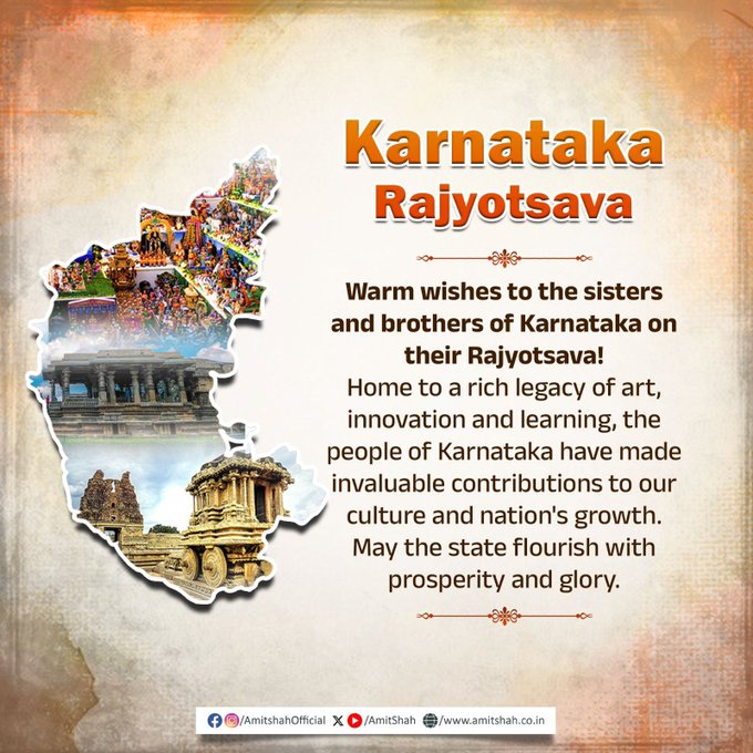 मुख्यमंत्री सिद्दारमैया बेंगलुरु में राज्योत्सव दिवस समारोह में देवी भुवनेश्वरी को पुष्पांजलि अर्पित करेंगे और उपस्थित जनसमूह को संबोधित करेंगे। मुख्यमंत्री शाम को कन्नड़ साहित्य, कला, सिनेमा, विज्ञान और प्रौद्योगिकी तथा कृषि जैसे क्षेत्रों में बहुमूल्य योगदान देने वाली 70 प्रतिष्ठित हस्तियों को सम्मानित करेंगे।