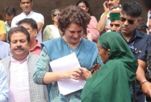 कांग्रेस की राष्ट्रीय महासचिव प्रियंका गांधी वाड्रा मंगलवार को आपदा से हुए नुकसान का जायजा लेने हिमाचल पहुंची। प्रियंका चंडीगढ़ से हवाई मार्ग से कुल्लू के भुंतर पहुंची। मीडिया की माने तो, उनके साथ मुख्यमंत्री सुखविंद्र सिंह सुक्खू, कांग्रेस के प्रदेश प्रभारी राजीव शुक्ला, सांसद प्रतिभा सिंह और लोक निर्माण मंत्री विक्रमादित्य सिंह भी मौजूद रहे। इसके बाद उन्होंने बाढ़ से हुई तबाही का जायजा लिया। प्रियंका भुंतर में बाढ़ प्रभावितों का दर्द जाना। इस दौरान प्रभावित लोगों की समस्याओं को सुना और हर संभव मदद का आश्वासन दिया। कुल्लू से मनाली तक बाढ़ से क्षतिग्रस्त हुई सड़क का जायजा लिया। प्रियंका ने मनाली में कहा कि केंद्र सरकार हिमाचल में आई आपदा को राष्ट्रीय आपदा घोषित करे। उन्होंने कहा कि इस संबंध में प्रधानमंत्री को पत्र लिखकर अवगत करवाया जाएगा।