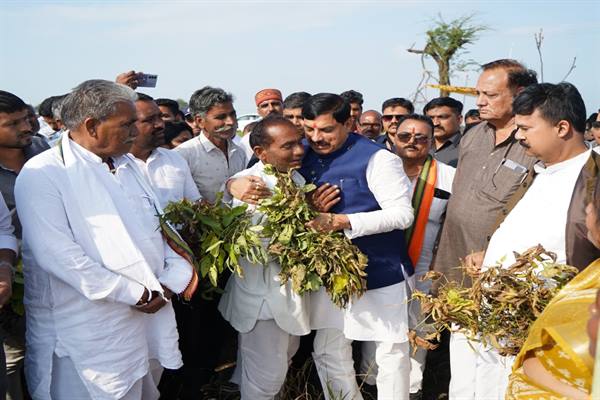मीडिया सूत्रों से मिली जानकारी के अनुसार, कल मुख्यमंत्री डॉ. मोहन यादव ने कहा है कि अतिवृष्टि से जहाँ भी फसलों को नुकसान हुआ है, वहाँ हर खेत का सर्वे कर किसानों को मुआवजा दिया जाएगा। किसान भाई चिंता न करें, राज्य सरकार उनके साथ खड़ी है। मुख्यमंत्री डॉ. यादव ने शुक्रवार को रतलाम जिले की सैलाना तहसील के करिया गाँव में अतिवृष्टि एवं पीला मोजेक से प्रभावित फसलों का अवलोकन किया। मुख्यमंत्री डॉ. यादव ने किसान मनोहर लाल मालवीय और राधेश्याम पाटीदार के खेतों में जाकर सोयाबीन की फसल का जायजा लिया और उन्हें आश्वस्त किया कि राज्य सरकार इस संकट से किसानों को उबारेगी।