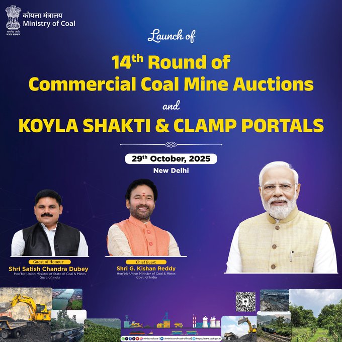 मीडिया सूत्रों से मिली जानकारी के अनुसार, कोयला और खान मंत्री जी. किशन रेड्डी आज नई दिल्ली में वाणिज्यिक कोयला खदान नीलामी के 14वें चरण का शुभारंभ करेंगे। कोयला मंत्रालय ने बताया है कि इस नीलामी का उद्देश्य व्यापार सुगमता बढाना, विविध क्षेत्रों से निवेश आकर्षित करना और उद्योग भागीदारी को प्रोत्साहित करना है। मंत्रालय ने कहा कि वह पहली बार नीलामी ढांचे में भूमिगत कोयला गैसीकरण – यूसीजी के प्रावधान शुरू कर रहा है।