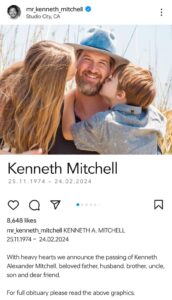 मीडिया की माने तो, अभिनेता के परिवार ने बयान जारी करते हुए कहा, ‘भारी मन से हम प्रिय पिता, पति, भाई, चाचा, बेटे और प्रिय मित्र केनेथ अलेक्जेंडर मिशेल के निधन के खबर की घोषणा कर रहे हैं। उन्हें 2018 में एएलएस का पता चला था।