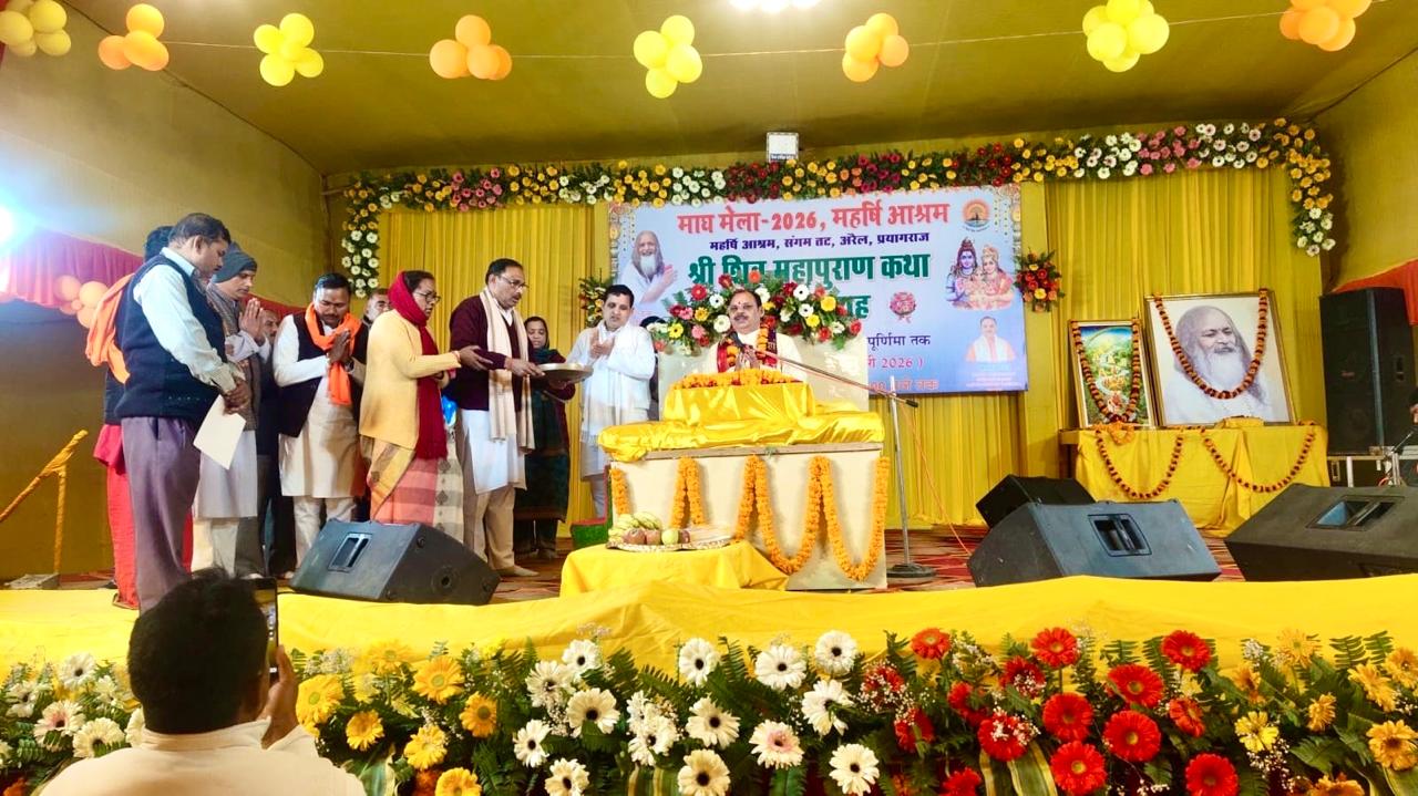 माघ मेला में आचार्य डॉ निलिम्प त्रिपाठी ने उत्साह, आनंद और उल्लास की वर्षा करा दी। वेद विद्या मार्तण्ड ब्रह्मचारी डॉ गिरीश जी के संयोजन में यह कथा चल रही है। शिव पुराण की महिमा में प्रयागराज का उल्लेख है शिव तीर्थ के रूप में यह पहले से ख्यात है। शिव पुराण में 24000 श्लोक हैं इसको सुनने वाला साक्षात शिव धाम जाता है। हर हर शंकर! घर-घर शंकर! का जय घोषकर आचार्य जी ने रुद्राक्ष की महिमा तथा पापी देवराज की मुक्ति की अद्भुत कथा सुनाई। बिंदुग तथा चंचुला की रहस्यमई कथा से लोग भाव विभोर हो गए।