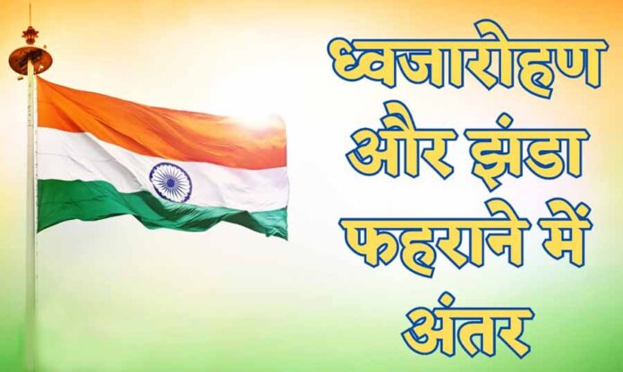 वहीं, स्वतंत्रता दिवस के मौके पर ध्वजारोहण किया जाता है, जो झंडा फहराने से काफी अलग होता है। 15 अगस्त के मौके पर दिल्ली के लाल किले पर देश के प्रधानमंत्री ध्वजारोहण करते हैं। ध्वजारोहण झंडा फहराने से अलग होता है। इस मौके पर राष्ट्रीय ध्वज को ऊपर की तरफ खींचा जाता है और फिर फहराया जाता है।