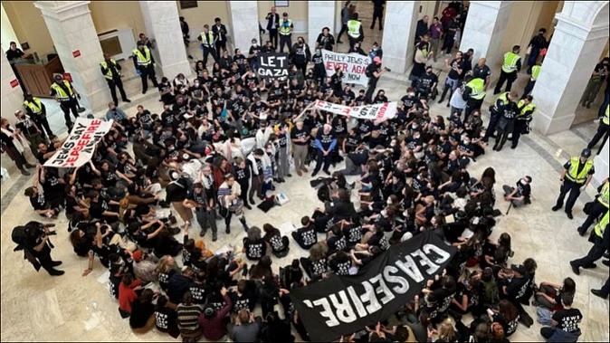 मीडिया सूत्रों से मिली जानकारी के अनुसार, यहूदी संगठन ने एक्स पर एक पोस्ट में कहा, हमें गिरफ्तार किया जा रहा है, लेकिन हम तब तक यहां से नहीं हटेंगे, जब तक हमें युद्धविराम के संबंध में आश्वासन नहीं मिल जाता है और गाजा में फलस्तीनियों का नरसंहार बंद नहीं हो जाता है। संगठन ने कहा कि पिछले 75 वर्षों से इस्राइली सरकार फलस्तीनी भूमि पर अवैध रूप से कब्जा कर रही है और फलस्तीनियों के समुदायों का सफाया किया जा रहा है। अब, गाजा में अमेरिका के पूर्ण समर्थन के साथ नरसंहार किया जा रहा है।