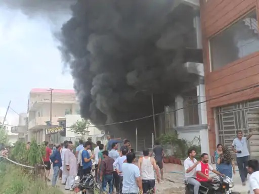 गाजियाबाद : आवासीय कॉलोनी में बने गोदाम में लगी भीषण आग