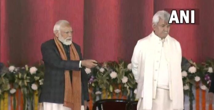 #WATCH जम्मू-कश्मीर: प्रधानमंत्री नरेंद्र मोदी ने श्रीनगर के बख्शी स्टेडियम में नियुक्ति पत्र बांटे। pic.twitter.com/3KqjoPdGwo