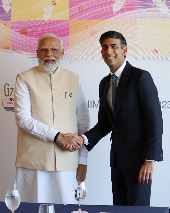 जापान: मीडिया सूत्रों से मिली जानकारी के अनुसार, प्रधानमंत्री नरेंद्र मोदी ने आज हिरोशिमा में यूनाइटेड किंगडम के प्रधानमंत्री ऋषि सुनक के साथ द्विपक्षीय बैठक की। पीएम मोदी ने ट्वीट कर कहा कि प्रधानमंत्री ऋषि सुनक की मुलाकात एक बहुत ही फलदायी था। हमने व्यापार, नवाचार, विज्ञान और ऐसे अन्य क्षेत्रों में सहयोग बढ़ाने पर चर्चा की।