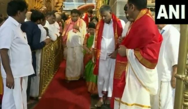 तेलंगाना के मुख्यमंत्री के चंद्रशेखर राव पत्नी शोभा के साथ तिरुमाला मंदिर पहुंचे। यहां उन्होंने भगवान वेंकटेश्वर के दर्शन किए और अर्चना सेवा में भाग लिया। सीएम केसीआर और उनकी पत्नी ने मंदिर के पुजारियों से आशीर्वाद प्राप्त किया। मीडिया की माने तो, तिरुमाला तिरुपति देवस्थानम (टीटीडी) के अधिकारियों ने केसीआर की पत्नी को भगवान वेंकटेश्वर का एक चित्र भेंट किया।