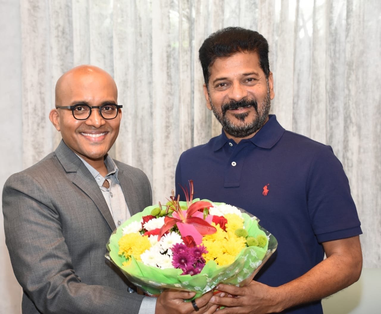 मीडिया सूत्रों से प्राप्त जानकारी के अनुसार, तेलंगाना के मुख्यमंत्री रेवंत रेड्डी ने हैदराबाद में गूगल के उपाध्यक्ष चंद्रशेखर थोटा, विंग्स ऑफ फायर के लेखक अरुण तिवारी और कैंसर रोबोटिक सर्जन डॉ. चिन्नाबाबू सुनकवल्ली से मुलाकात की।