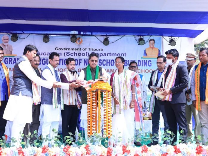 मीडिया सूत्रों से मिली जानकारी के अनुसार, त्रिपुरा के मुख्यमंत्री माणिक साहा ने शनिवार को कहा कि त्रिपुरा शिक्षा, संस्कृति, खेल, उद्योग और वाणिज्य के सभी क्षेत्रों में आगे बढ़ रहा है और विकास के मामले में देश में पहले ही एक विशेष स्थान प्राप्त कर चुका है। साहा ने यह बात दक्षिण त्रिपुरा जिले के बेलोनिया विद्यापीठ मैदान में राज्य के विभिन्न हिस्सों में कई विकास परियोजनाओं का वर्चुअल रूप से उद्घाटन और शिलान्यास करते हुए कही।मुख्यमंत्री ने सर्वप्रथम बेलोनिया उपमंडल के राजनगर क्षेत्र में स्थित निहारनगर कक्षा बारहवीं विद्यालय के नवनिर्मित पक्के भवन का उद्घाटन किया। इसके बाद उन्होंने घोषखामार कक्षा बारहवीं विद्यालय के नवनिर्मित पक्के भवन का उद्घाटन किया, जबकि बेलोनिया अंग्रेजी माध्यम कक्षा बारहवीं विद्यालय के पक्के भवन का उद्घाटन आभासी माध्यम से किया गया। उद्घाटन समारोह में बोलते हुए, साहा ने कहा कि सरकार यह सुनिश्चित करने के लिए काम कर रही है कि राज्य में प्रत्येक विकास परियोजना का लाभ हाशिए पर रहने वाले लोगों तक पहुंचे। उन्होंने कहा, “राजनगर क्षेत्र में सड़क, पेयजल, बिजली, शिक्षा आदि के विकास के लिए विभिन्न परियोजनाओं पर लगभग 80 करोड़ रुपये खर्च किए जा रहे हैं। त्रिपुरा को विकास के क्षेत्र में 347 पुरस्कार प्राप्त हुए हैं। शिक्षा व्यवस्था में सुधार के लिए नए स्कूल स्थापित किए जा रहे हैं, स्मार्ट क्लास और डिजिटल लाइब्रेरी बनाई जा रही हैं और छात्रों को छात्रवृत्ति प्रदान की जा रही है। नई शिक्षा नीति के अनुरूप एससीईआरटी पाठ्यक्रम शुरू किए गए हैं।”
