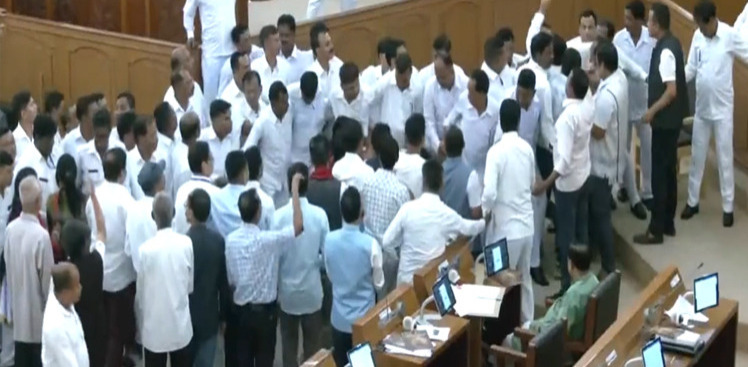 मीडिया सूत्रों से मिली जानकारी के अनुसार, त्रिपुरा विधानसभा में आज जबरदस्त हंगामा हुआ। बजट सत्र के बीच विधायक आपस में भिड़ गए। सदन के अंदर बीजेपी और टिपरा मोथा पार्टी के विधायक हाथापाई करने लगे। इस दौरान मार्शल आए और बीच बचाव किया। विधानसभा की कार्यवाही में ‘‘बाधा डालने’’ को लेकर स्पीकर ने 5 विधायकों को सस्पेंड कर दिया है, जिसके विरोध में विपक्षी दलों ने सदन से बहिर्गमन किया। विधानसभा अध्यक्ष विश्वबंधु सेन ने सदन में ‘‘व्यवधान पैदा’’ करने पर मार्क्सवादी कम्युनिस्ट पार्टी के विधायक नयन सरकार, कांग्रेस के सुदीप रॉय बर्मन और टिपरा मोथा के तीन विधायकों को दिन भर के लिए सस्पेंड कर दिया। टिपरा मोथा के निलंबित विधायकों में बृस्वकेतु देबबर्मा, नंदिता रियांग और रंजीत देबार्मा शमिल हैं।