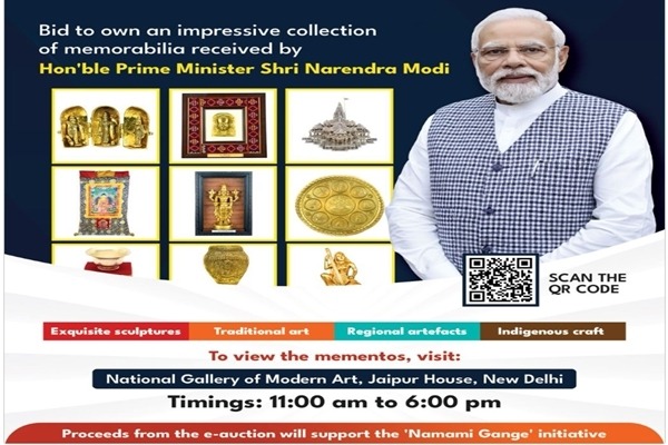 मीडिया से प्राप्त जानकारी के अनुसार, यह नीलामी दो अक्टूबर तक pmmementos.gov.in पर ऑनलाइन उपलब्ध है। ई-नीलामी में देश भर से एक हजार तीन सौ से ज़्यादा अनूठी वस्तुएँ प्रदर्शित की जा रही हैं। नीलामी से प्राप्त सभी आय नमामि गंगे परियोजना में योगदान करेगी।
