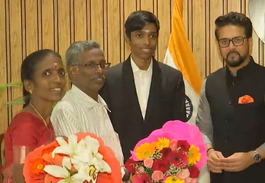 दिल्ली: मीडिया सूत्रों से मिली जानकारी के अनुसार, भारतीय शतरंज ग्रैंडमास्टर और 2023 FIDE विश्व कप उपविजेता आर प्रग्गनानंद और उनके माता-पिता को केंद्रीय खेल मंत्री अनुराग ठाकुर ने सम्मानित किया। मीडिया से प्राप्त जानकारी के अनुसार, इस अवसर पर भारतीय शतरंज ग्रैंडमास्टर और 2023 FIDE विश्व कप उपविजेता आर प्रग्गनानंद ने कहा, “मुझे बहुत अच्छा लग रहा है। मुझे जो समर्थन मिल रहा है, वो बहुत प्रेरित करता है।”