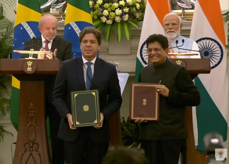 मीडिया सूत्रों से मिली जानकारी के अनुसार, भारत और ब्राजील ने नई दिल्ली में डिजिटल साझेदारी, दुर्लभ एवं महत्वपूर्ण खनिजों, लघु-मध्यम उद्यम तथा तटीय क्षेत्रों में सहयोग सहित कई समझौतों पर हस्ताक्षर किए। प्रधानमंत्री नरेंद्र मोदी एवं ब्राजील राष्ट्रपति लुई इनासियो लूला दा सिल्वा के बीच द्विपक्षीय संबंधों की समीक्षा हुई। दोनों ने बहुपक्षीय मंचों, सुधारित बहुपक्षवाद, वैश्विक शासन एवं वैश्विक दक्षिण मुद्दों पर विचार-विमर्श किया। पीएम मोदी ने कहा कि राष्ट्रपति लूला के नेतृत्व में संबंध मजबूत हुए हैं तथा अगले पांच वर्षों में व्यापार 20 अरब डॉलर तक पहुंचेगा।