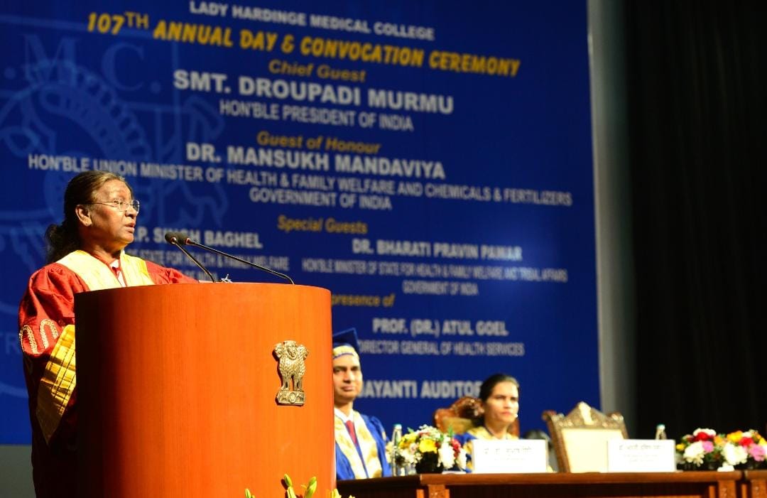 President Droupadi Murmu graced 107th Annual Day and Convocation Ceremony of Lady Hardinge Medical College in New Delhi. The President said that people consider doctors as God and the doctors should understand this moral responsibility and behave accordingly.… pic.twitter.com/hUbrCXiEwQ