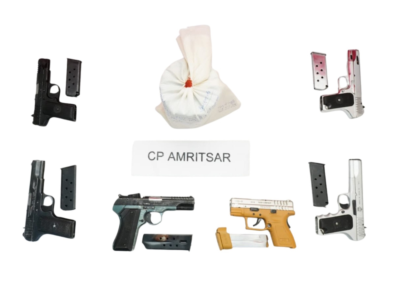 मीडिया से प्राप्त जानकारी के अनुसार, एक्स पर एक पोस्ट में, पुलिस महानिदेशक के आधिकारिक खाते ने साझा किया, “खुफिया जानकारी के आधार पर कार्रवाई करते हुए, अमृतसर कमिश्नरेट पुलिस ने पाकिस्तान से जुड़े हथियार और नार्को नेटवर्क को ध्वस्त कर दिया और पांच लोगों को गिरफ्तार किया और 1 किलो 10 ग्राम हेरोइन के साथ छह अत्याधुनिक पिस्तौल (पांच .30 बोर और एक ग्लॉक 9 मिमी) बरामद की।” छेहर्टा और कैंटोनमेंट पुलिस थानों में आर्म्स एक्ट और एनडीपीएस एक्ट के तहत एफआईआर दर्ज की गई है। पुलिस ने कहा कि अतिरिक्त संचालकों की पहचान करने और पूरे नेटवर्क को ध्वस्त करने के लिए जांच जारी है। उन्होंने इस बात पर जोर दिया कि वे सीमा पार तस्करी को रोकने और सार्वजनिक सुरक्षा सुनिश्चित करने के लिए प्रतिबद्ध हैं। पोस्ट में लिखा है, “प्रारंभिक जाँच से पता चला है कि गिरफ्तार आरोपी सोशल मीडिया और ड्रोन के माध्यम से पाकिस्तान स्थित संचालकों के संपर्क में हैं और पंजाब में अवैध हथियारों और नशीले पदार्थों की आवाजाही और वितरण में समन्वय करते हैं। आर्म्स एक्ट और एनडीपीएस एक्ट के तहत एफआईआर छेहरटा और कैंटोनमेंट पुलिस स्टेशन में दर्ज हैं। संचालकों की पहचान करने और पूरे नेटवर्क को खत्म करने के लिए आगे की जाँच जारी है। पंजाब पुलिस सीमा पार तस्करी को रोकने और जनता की सुरक्षा सुनिश्चित करने के लिए प्रतिबद्ध है।”