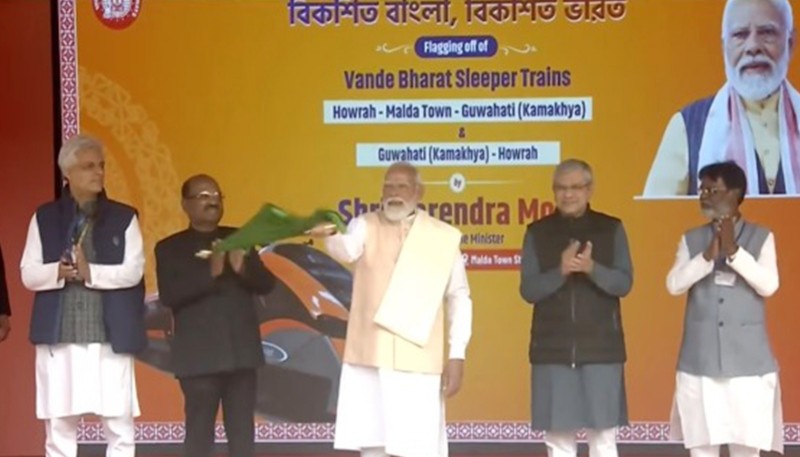 मीडिया सूत्रों से मिली जानकारी के अनुसार, प्रधानमंत्री नरेंद्र मोदी ने शनिवार को पश्चिम बंगाल के मालदा से भारत की पहली वंदे भारत स्लीपर ट्रेन को हरी झंडी दिखाकर रवाना किया, जो भारतीय रेलवे के चल रहे आधुनिकीकरण में एक महत्वपूर्ण उपलब्धि है। अत्याधुनिक सुविधाओं से लैस वंदे भारत एक्सप्रेस का स्लीपर संस्करण हावड़ा- गुवाहाटी (कामाख्या) मार्ग पर चलेगा।