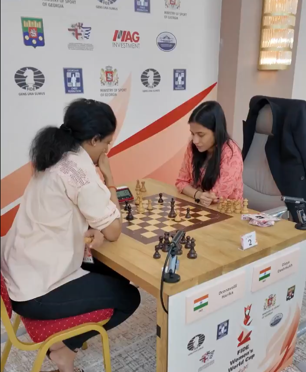 मीडिया सूत्रों से मिली जानकारी के अनुसार, जॉर्जिया के बटुमी में फिडे महिला विश्व कप शतरंज – 2025 में भारत की ग्रैंड मास्टर दिव्या देशमुख सेमीफाइनल में पहुँच गई हैं। दिव्या ने रैपिड टाई-ब्रेक में हमवतन हरिका द्रोणावल्ली को दो-शून्य से हराया। भारत की कोनेरू हम्पी भी अंतिम चार में पहुंच गई हैं।