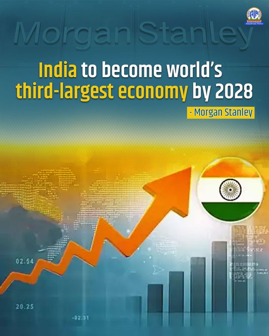 मॉर्गन स्टेनली के अनुसार 2028 में भारत की अर्थव्यवस्था बढ़कर 57 खरब डॉलर हो जायेगी और वह जर्मनी से आगे निकल जाएगा । रिपोर्ट में यह भी  कहा गया है कि भारत दुनिया के सबसे अधिक मांग वाले उपभोक्ता बाजार के रूप में उभरा है और उसकी वैश्विक आर्थिक रैंकिंग में भी उल्लेखनीय सुधार हुआ है।