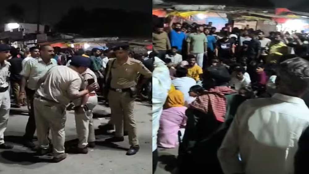 भोपाल में गणपति जुलूस पर हिंसा, जनता ने पुलिस थाने के बाहर किया प्रदर्शन
