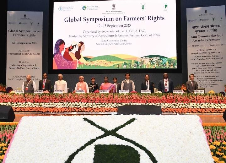 राष्ट्रपति द्रौपदी मुर्मू ने मंगलवार को नई दिल्ली में राष्ट्रीय कृषि विज्ञान केंद्र परिसर में किसानों के अधिकारों पर पहली वैश्विक संगोष्ठी का उद्घाटन किया। कार्यक्रम में 59 देशों के प्रख्यात वैज्ञानिक और किसान शामिल हुए। इस अवसर पर राष्ट्रपति ने कहा कि दुनिया का कृषक समुदाय फसल विविधता का सच्चा संरक्षक है। इस दिशा में किसानों के पास असाधारण शक्ति और जिम्मेदारी है। मीडिया की माने तो, उन्होंने पौधों और प्रजातियों की कई किस्मों की रक्षा और उन्हें पुनर्जीवित करने के किसानों के प्रयास की सराहना की। राष्ट्रपति ने कहा कि भारत विशाल विविधता वाला देश है। इसका क्षेत्रफल भले ही विश्व का केवल 2.4 प्रतिशत लेकिन दुनिया की 7 से 8 प्रतिशत जैव प्रजातियां यहीं है। भारत की समृद्ध कृषि-जैव विविधता वैश्विक समुदाय के लिए एक खजाना रही है।
