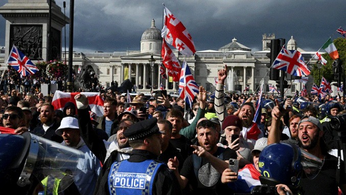 मीडिया सूत्रों से मिली जानकारी के अनुसार, ब्रिटेन की राजधानी लंदन में कल एक लाख से अधिक लोगों ने अधिक संख्या में प्रवासियों की मौजूदगी के विरोध में प्रदर्शन किए। इस दौरान प्रदर्शनकारियों और पुलिस की झड़प में 26 अधिकारी घायल हो गए। प्रदर्शन के दौरान पुलिस अधिकारियों पर हमले के मामले में 25 लोगों को गिरफ्तार किया गया है।