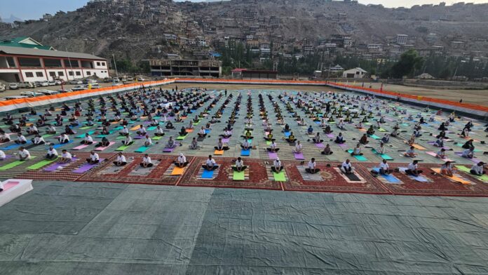 मीडिया सूत्रों से मिली जानकारी के अनुसार, लद्दाख में आज कारगिल के ख्री सुल्तान चू स्पोर्ट्स स्टेडियम में अंतर्राष्ट्रीय योग दिवस बड़े उत्साह के साथ मनाया गया। कार्यक्रम की शुरुआत योग शपथ के साथ हुई। जिसके बाद सामूहिक योग सत्र का आयोजन हुआ, जिसमें सैकड़ों योग प्रेमियों ने भाग लिया। इस अवसर कारगिल के अध्यक्ष और मुख्य कार्यकारी पार्षद डॉ. मोहम्मद जाफर अखून मुख्य अतिथि थे। अपने संबोधन में डॉ. अखून ने योग को अंतर्राष्ट्रीय मंच पर ले जाने के लिए प्रधानमंत्री नरेंद्र मोदी के दूरदर्शी नेतृत्व की प्रशंसा की।