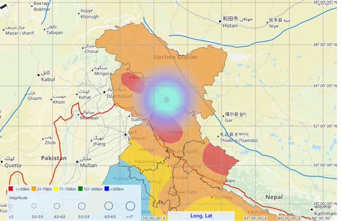 मीडिया सूत्रों से मिली जानकारी के अनुसार, लद्दाख में कल भूकंप के झटके महसूस किए गए। भूकंप के झटके देर रात 10 बजकर 35 मिनट पर महसूस किए गए। जानकारी के मुताबिक, लद्दाख में आए भूकंप की तीव्रता 3.8 मापी गई। भूकंप की गहराई 10 किलोमीटर थी। राष्ट्रीय भूकंपीय निगरानी केंद्र (एनएसएमसी) के अनुसार, भूकंप का एपिसेंटर 33.34 लैटिट्यूड और 76.75 लोंगिट्यूड था। लद्दाख में आए भूकंप के झटको से अभी तक जान-माल के नुकसान की कोई खबर नहीं है।