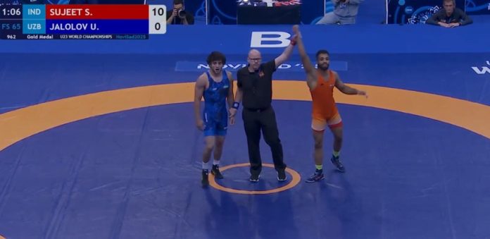 मीडिया सूत्रों से मिली जानकारी के अनुसार, सुजीत कलकल ने कल सर्बिया में अंडर-23 विश्व कुश्ती चैंपियनशिप के पुरुषों के फ्रीस्टाइल 65 किलोग्राम वर्ग में स्वर्ण पदक जीता। उन्होंने खिताबी मुकाबले में उज़्बेकिस्तान के उमिदजोन जलोलोव को 10-0 से हराया। मुकाबला चार मिनट 54 सेकंड तक चला और रेफरी ने भारतीय पहलवान को विजेता घोषित कर दिया। यह कलकल का पहला विश्व खिताब है। इससे पहले वे दो अंडर 23 एशियाई खिताब और एक अंडर 20 एशियन चैंपियनशिप में स्वर्ण पदक अपने नाम कर चुके हैं।