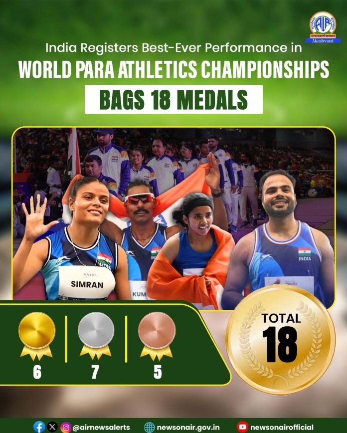 विश्व पैरा एथलेटिक्स चैंपियनशिप-2025 में भारत ने अंतिम दिन तीन पदक जीते, कुल पदकों की संख्या 18 हुई