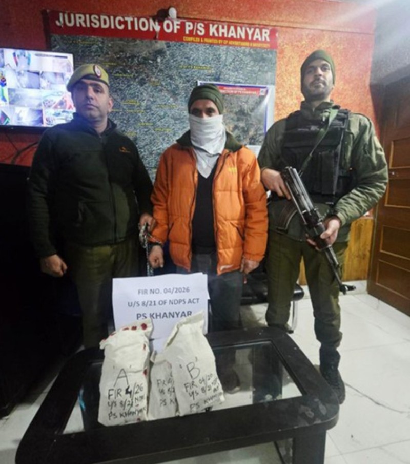 मीडिया से प्राप्त जानकारी के अनुसार, तलाशी लेने पर उसके बैग से लगभग 1.6 किलोग्राम वजन के हेरोइन के दो पैकेट बरामद हुए। पूछताछ के दौरान आरोपी ने अपनी पहचान “फयाज अहमद डार” के रूप में बताई, जो बुडगाम के इचगाम का निवासी है। तदनुसार, खानयार पुलिस स्टेशन में एनडीपीएस अधिनियम की धारा 8 और 21 के तहत एफआईआर दर्ज की गई। आधिकारिक विज्ञप्ति के अनुसार, आरोपी को गिरफ्तार कर लिया गया है और नशीले पदार्थों की तस्करी में शामिल स्रोत और नेटवर्क का पता लगाने के लिए पुलिस द्वारा आगे की जांच की जा रही है। श्रीनगर पुलिस ने विज्ञप्ति के अंत में मादक पदार्थों के तस्करों के खिलाफ कड़ी कार्रवाई करने के अपने दृढ़ संकल्प को दोहराया और आम जनता से मादक पदार्थों के दुरुपयोग या अवैध नशीले पदार्थों के व्यापार से संबंधित किसी भी जानकारी को साझा करने में सहयोग करने की अपील की, ताकि इस सामाजिक बुराई को प्रभावी ढंग से रोका जा सके।