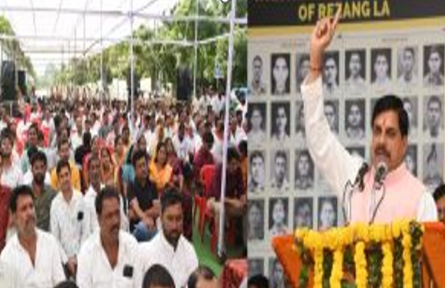 मुख्यमंत्री डॉ. यादव शुक्रवार को अटल पथ पर रेजांग-ला युद्ध में अमर बलिदानियों के श्रद्धांजलि कार्यक्रम को संबोधित कर रह थे। उन्होंने रेजांग-ला पवित्र रज कलश का पूजन किया और यात्रा के आयोजकों को सरकार की ओर से शुभकामनाएं दीं। उन्होंने कहा कि सरकार हर ऐसे पुनीत कार्य में सहयोगी है, जिससे आमजनों में देश प्रेम की भावना का संचार हो।