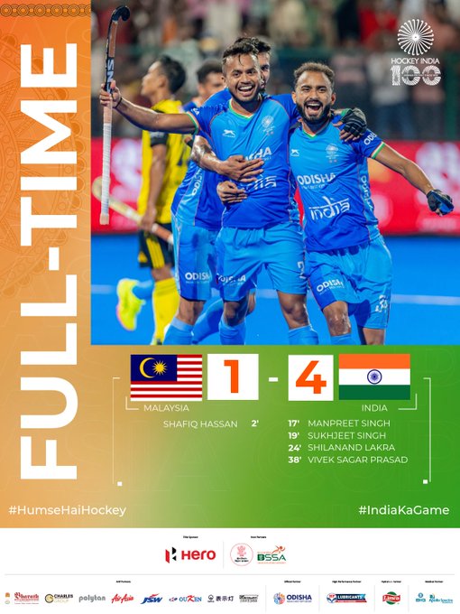 इस जीत के साथ, भारत चार अंकों के साथ सुपर फोर ग्रुप में शीर्ष पर है, जिसमें कोरिया, मलेशिया और चीन भी शामिल हैं।