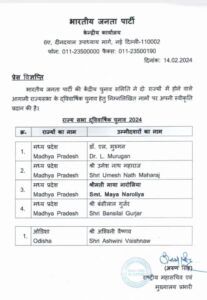 बता दें कि आगामी राज्यसभा चुनाव के लिए इससे पहले रविवार (11 फरवरी) को बीजेपी ने पहली लिस्ट जारी की। इस लिस्ट में बिहार, छत्तीसगढ़, हरियाणा, कर्नाटक, उत्तर प्रदेश, उत्तराखंड और पश्चिम बंगाल के लिए उम्मीदवारों के नाम का ऐलान किया।