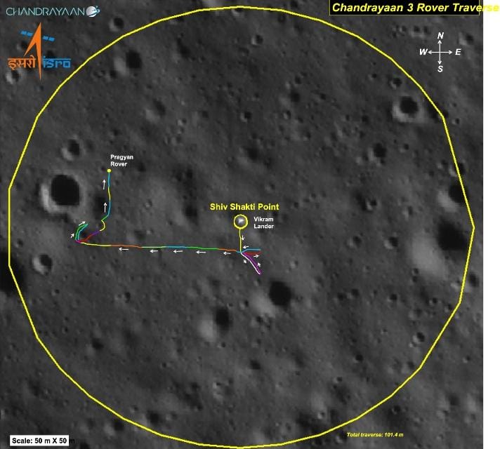 भारतीय अंतरिक्ष अनुसंधान संगठन (ISRO) का मिशन चंद्रयान-3 चंद्रमा से लगातार नई-नई जानकारियां भेज रहा है। इस बीच ISRO ने एक और बड़ी जानकारी साझा करते हुए बताया कि चंद्रयान-3 के रोवर प्रज्ञान ने चंद्रमा की सतह पर 100 मीटर से ज्यादा की दूरी तय कर ली है। मीडिया की माने तो, ISRO ने X पर (ट्वीट) किया, “प्रज्ञान 100*…इस बीच, चंद्रमा के ऊपर, प्रागन रोवर 100 मीटर से अधिक की दूरी तय कर चुका है और जारी है।”