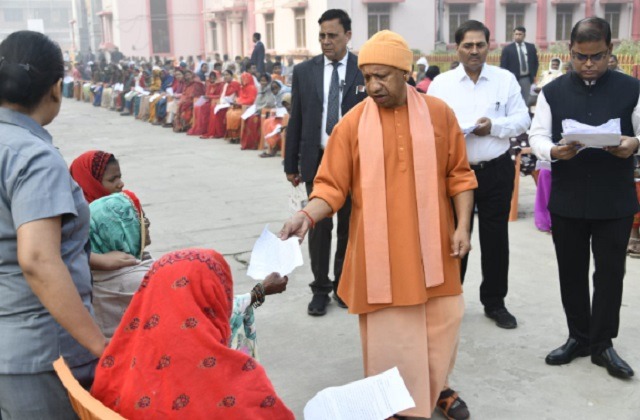 उत्तर प्रदेश के मुख्यमंत्री योगी आदित्यनाथ ने अपने गोरखपुर दौरे पर है। आज यानी शुक्रवार को सीएम ने गोरखनाथ मंदिर में जनता दरबार लगाया। इस दौरान सीएम ने अपनी समस्या लेकर आए सभी फरियादियों से बातचीत की और उनकी समस्या सुनी। इसके बाद संबंधित अधिकारियों को समय से जनता की समस्याओं का निस्तारण करने के निर्देश दिए है। सीएम ने जनता को भरोसा दिलाया कि सभी की समस्या का जल्द समाधान किया जाएगा। मीडिया की माने तो, जनता दर्शन में मुख्यमंत्री ने करीब 300 लोगों की समस्याएं सुनीं। इसमें बड़ी संख्या महिलाओं की रही। इस दौरान एक महिला ने आवास की समस्या बताई। इस पर मुख्यमंत्री ने तुरंत अधिकारियों को निर्देशित किया कि महिला को पीएम आवास योजना या सीएम आवास योजना के तहत मकान उपलब्ध कराया जाए।