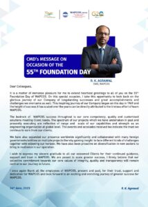 Delhi: Today, WAPCOS Limited (CPSU of Ministry of Jal Shaki, GoI) celebrating their 55th Foundation Day. WAPCOS CMD’s Message on occasion of 55th Foundation Day “We, at WAPCOS, underscore our commitment to deliver dedicated quality services in the fields of Water, Power and Infrastructure Development in accordance with global standards and ensuring satisfaction of our Clientele. We are sincerely thankful to our esteemed Clients, Associated Partners, Employees and other stakeholders for their unwavering support throughout this successful journey. We seek your blessings and good wishes for enabling us to further excel and reach Greater Heights.”