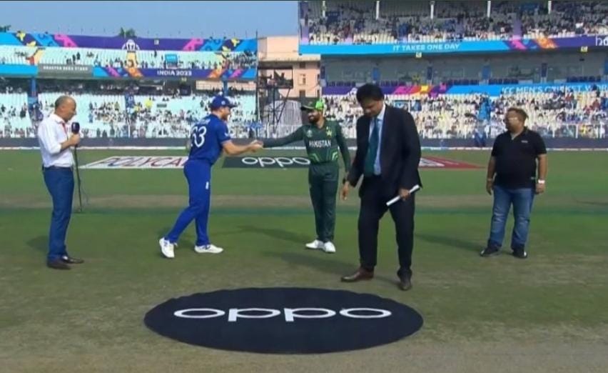 विश्व कप 2023 का 44वां मैच आज इंग्लैंड और पाकिस्तान के बीच कोलकाता के ईडन गार्डन्स में खेला जाएगा। मीडिया सूत्रों से मिली जानकारी के अनुसार, वहीं इंग्लैंड ने पाकिस्तान के खिलाफ टॉस जीतकर पहले बल्लेबाजी का फैसला किया है।