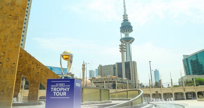 मध्य पूर्वी देश कुवैत और बहरीन में ICC पुरुष क्रिकेट विश्व कप 2023 ट्रॉफी टूर का गर्मजोशी से स्वागत किया गया। दौरे के पहले दिन अल-हाशमी-II में एक विशेष आमंत्रण कार्यक्रम के दौरान विश्व कप ट्रॉफी का अनावरण कुवैत क्रिकेट क्लब (केसीसी) के अध्यक्ष हैदर फरमान और आईसीसी के उपाध्यक्ष इमरान ख्वाजा समेत विशिष्ट अतिथियों की उपस्थिति में किया गया। मीडिया की माने तो, अनावरण के बाद फोटो शूट का अवसर दिया गया। ट्राफी को कुवैत के प्रतिष्ठित स्थानों जैसे कुवैत टावर्स, संसद, अल हमरा टावर ले जाया गया। कुवैत में ट्राफी टूर का समापन सुलैबिया क्रिकेट ग्राउंड में हुआ जहां लगभग 10 हजार प्रशंसक शामिल हुए।