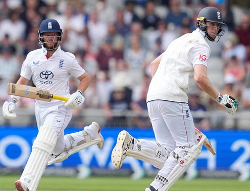 मीडिया से प्राप्त जानकारी के अनुसार, 374 रनों के लक्ष्य का पीछा करने उतरी इंग्लैंड की टीम को दिन का खेल समाप्त होने से ठीक पहले मोहम्मद सिराज ने करारा झटका दिया। उन्होंने आखिरी गेंद पर जैक क्राउली को बोल्ड किया। वह 36 गेंदों में 14 रन बनाकर आउट हुए। क्राउली और बेन डकेट के बीच पहले विकेट के लिए 50 रनों की साझेदारी हुई। दिन का खेल समाप्त होने तक डकेट 48 गेंदों में चार चौके की मदद से 34 रन बनाकर क्रीज पर मौजूद हैं।