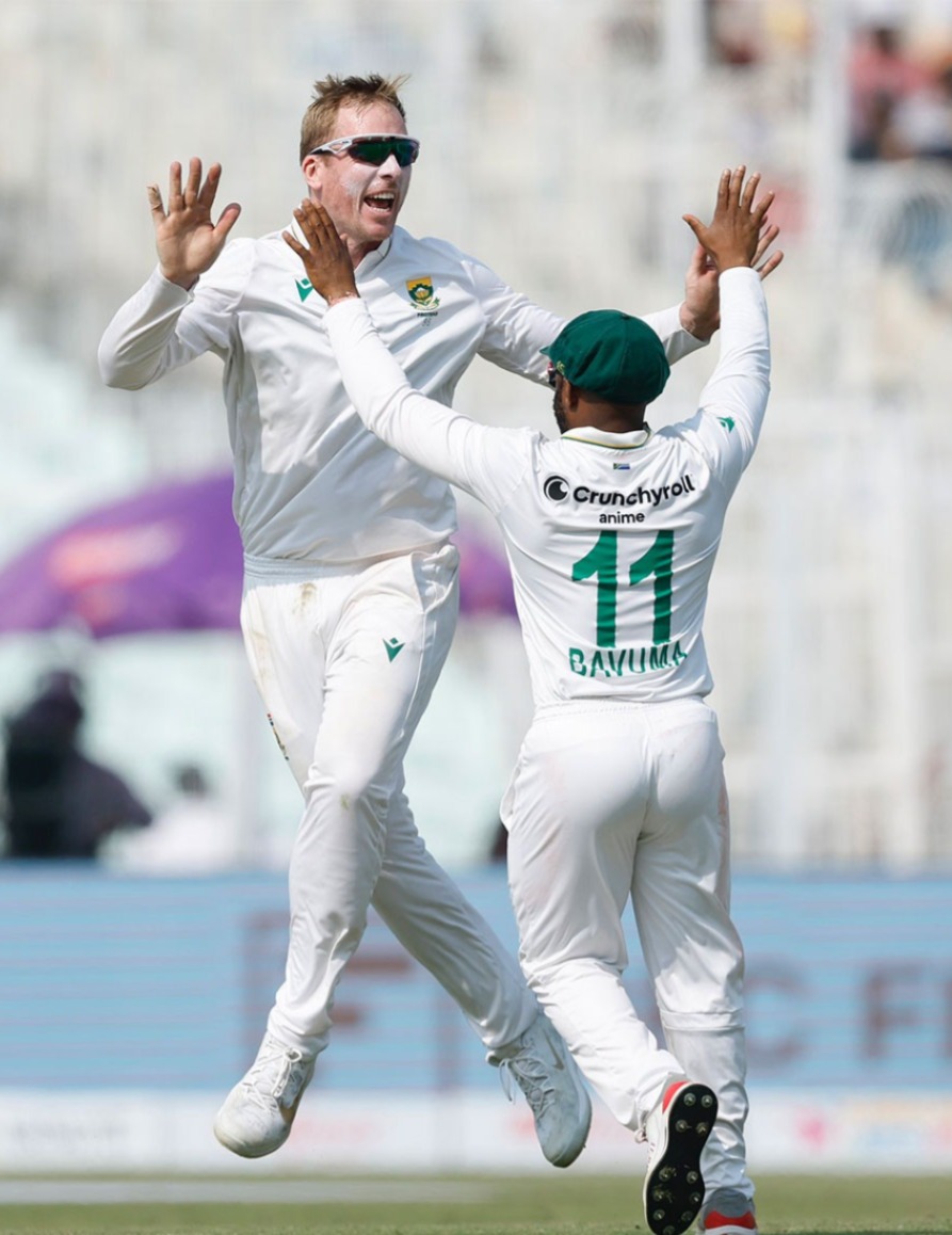 मीडिया से प्राप्त जानकारी के अनुसार, दक्षिण अफ्रीका की जीत के रियल हीरो साइमन हार्मर रहे, जिन्होंने कुल 8 विकेट चटकाए। बता दें कि दक्षिण अफ्रीका ने पहली पारी में 159 रन बनाए थे। जिसके जवाब में भारत ने 30 रन की बढ़त हासिल करते हुए 189 रन बनाए थे। दूसरी पारी में दक्षिण अफ्रीका की टीम 153 रन पर ढेर हो गई थी। टेम्बा बावुमा ने 55 रन की नाबाद पारी खेली थी। सिर्फ टेम्बा ही कोलकाता टेस्ट में अर्धशतक जड़ सकें।